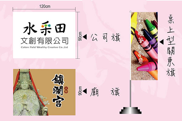 旗桿:直立旗(高210cm)、 車型(高47cm)、 三段式伸縮(高240cm)。